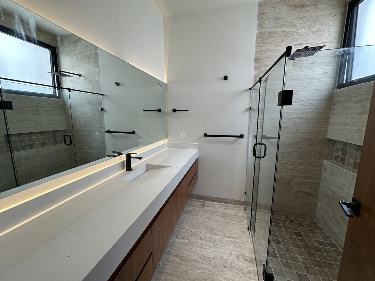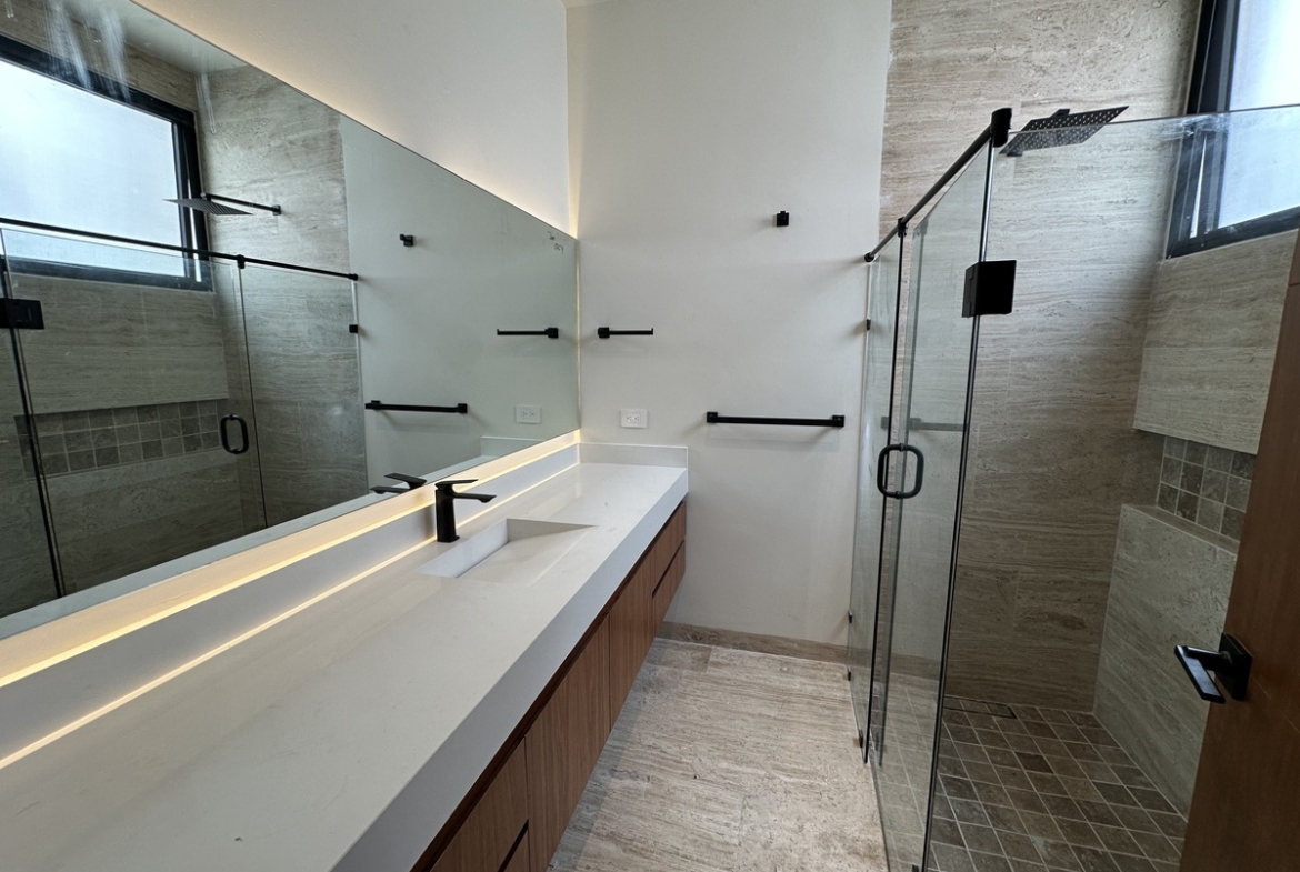 – 4 habitaciones con baño, vestidor, ventilador y mini split (1 en planta baja y 3 en planta alta).
