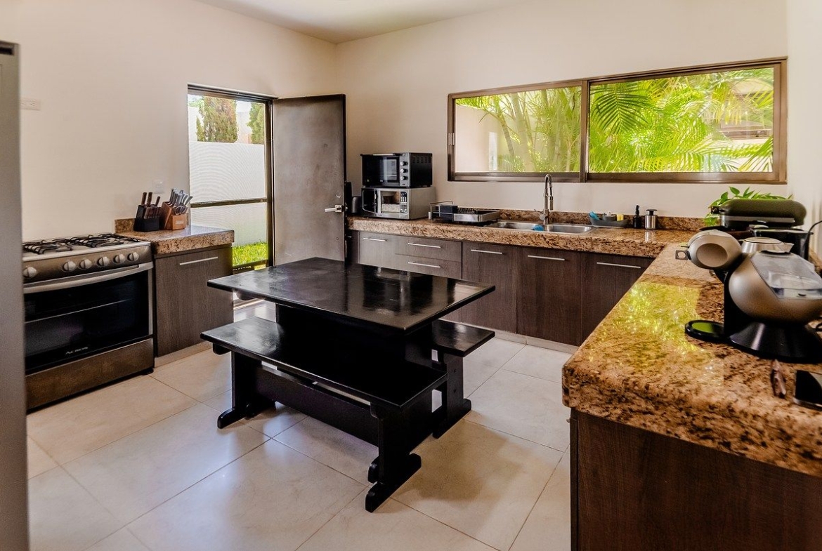 -Cocina integral: Equipada con estufa y campana.