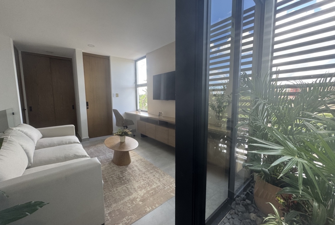 – 1 habitacion con walk in closet, baño completo y balcón techado