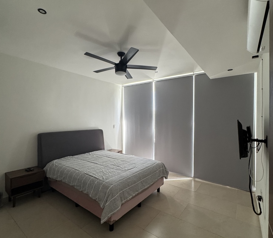 – Recamara principal con closet vestidor y baño. (Cuenta con almohadas, sábanas y sobrecama, TV y aire acondicionado.
