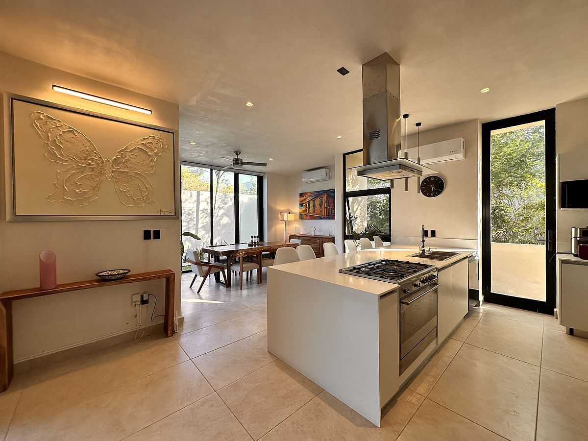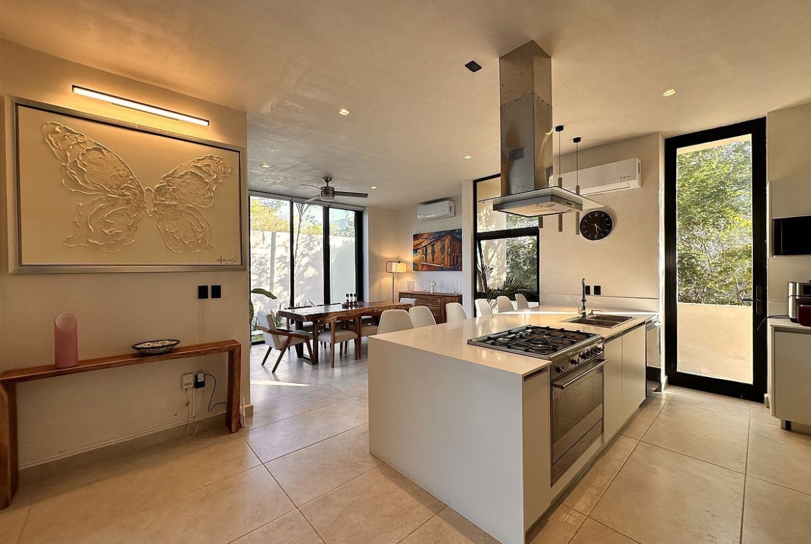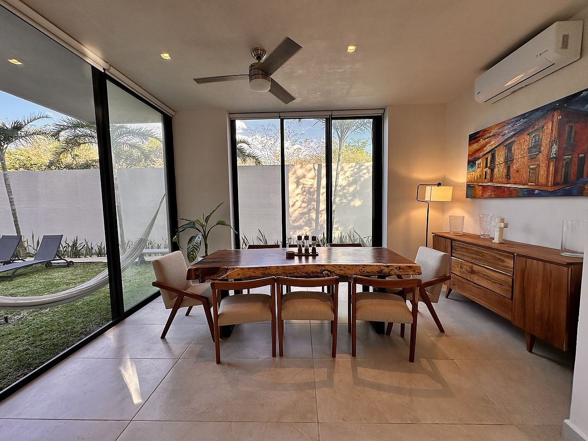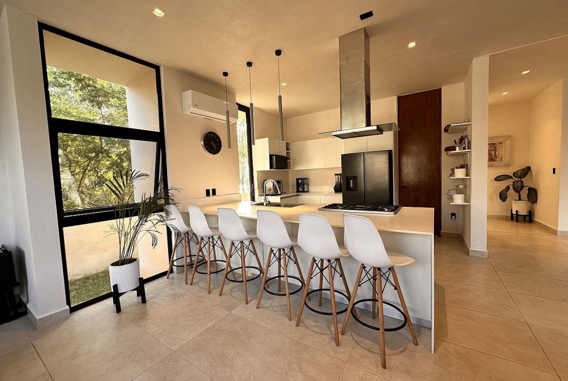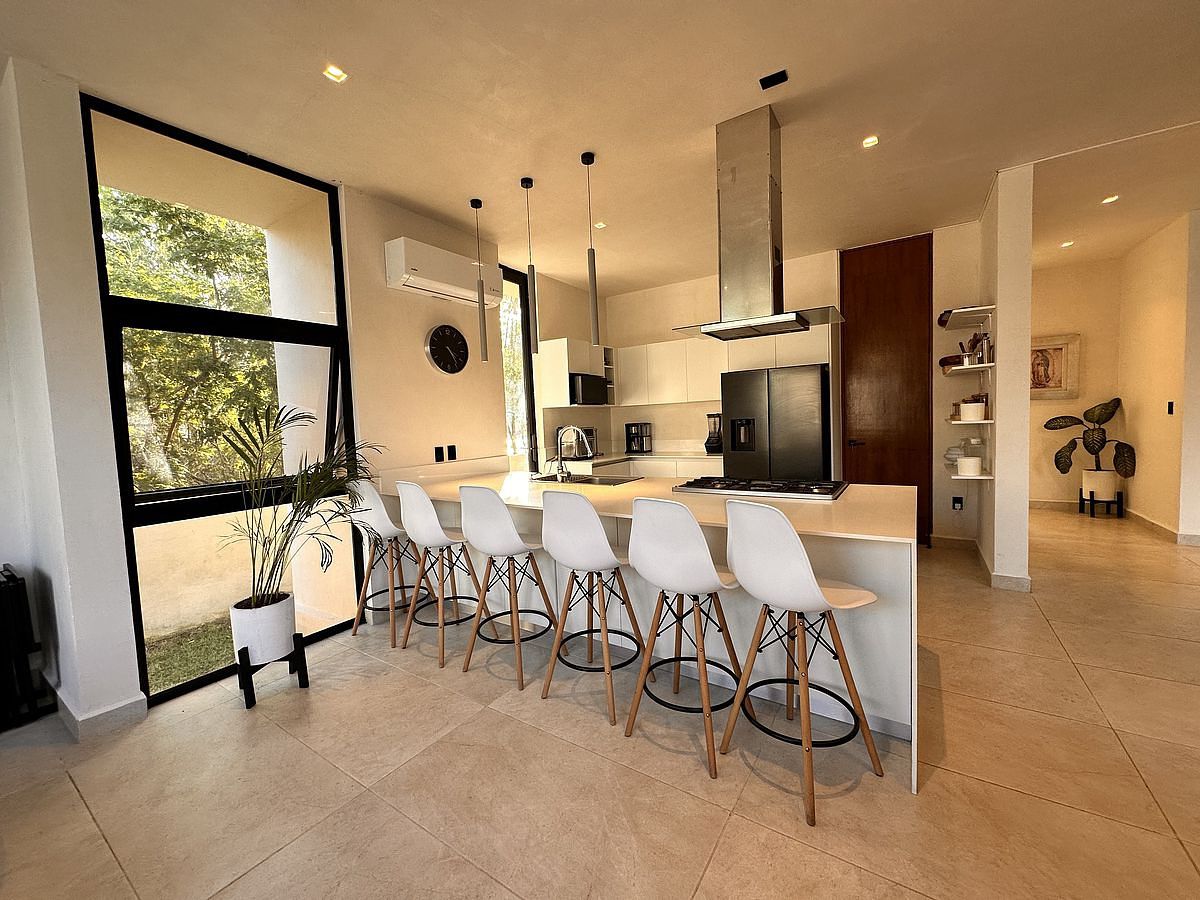Se vende casa totalmente amueblada, equipada y con paneles solares en la privada Kutz, dentro del Yucatán Country Club. Esta residencia destaca por su arquitectura, pensada para priorizar funcionalidad y frescura, por lo que su diseño combina elegancia y confort.