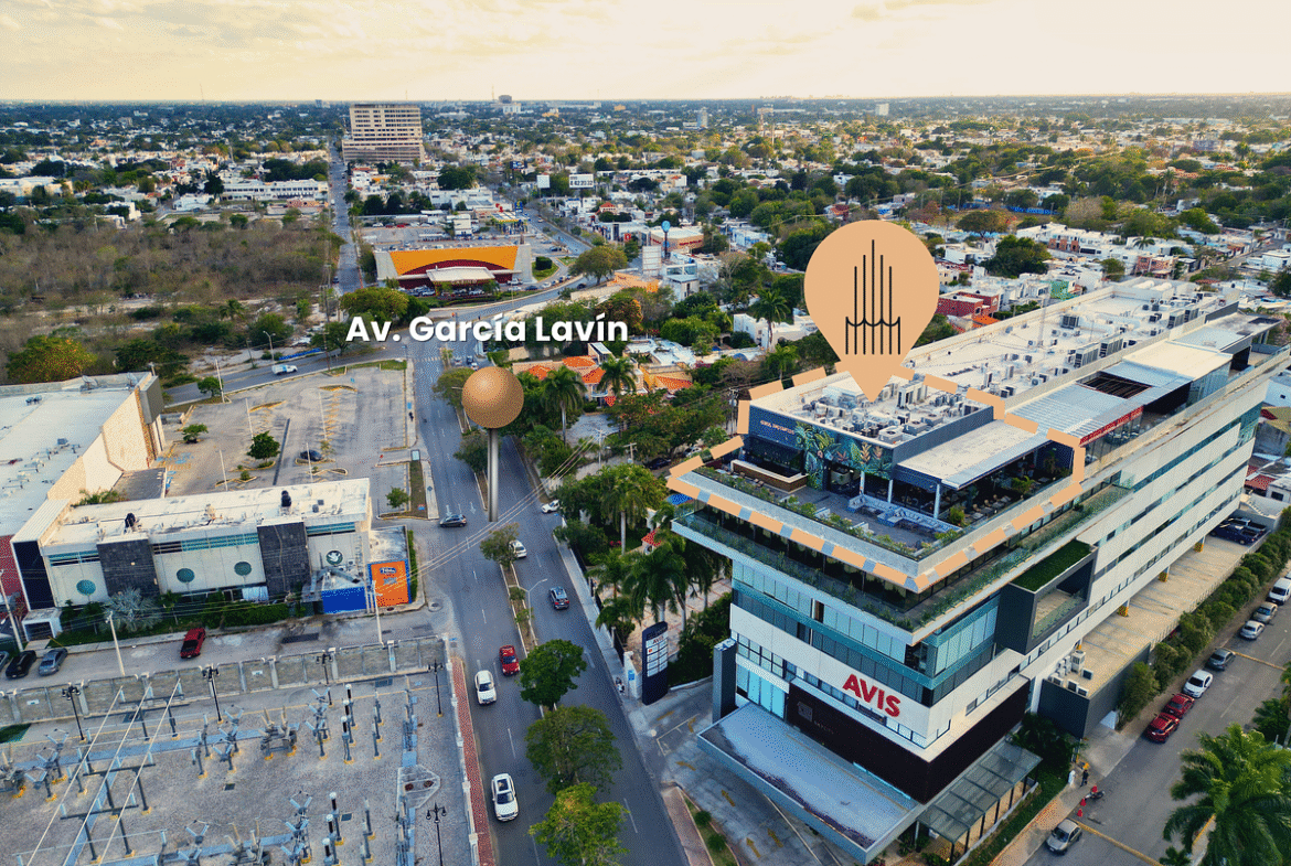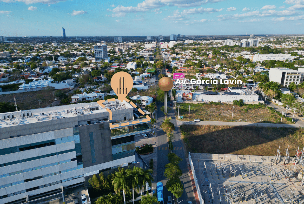 Su posición en el rooftop brinda vistas panorámicas a la ciudad, alta visibilidad y presencia en el corazón del norte de Mérida, rodeado de comercios locales y cadenas nacionales, restaurantes, casinos, el parque Villas La Hacienda, la avenida Cámara de Comercio, área residencial y servicios de primer nivel.
