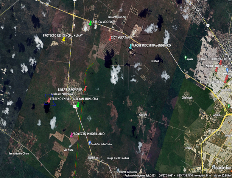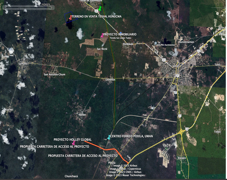 Este terreno es ideal para inversionistas, pues además de sus amplias dimensiones, se encuentra rodeado de proyectos inmobiliarios e industriales. Algunos de estos son: Halley Global, parque industrial de mil hectáreas; conexión ferroviaria del Tren Maya de Poxilá a Puerto Progreso; y la privada residencial “Kumay”; además de comercios locales y nacionales.